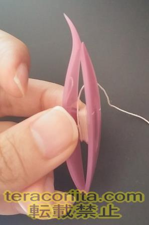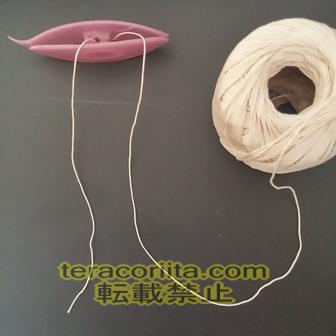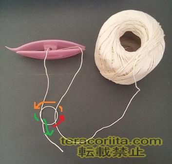 1.図のようにシャトルの穴に糸を通します