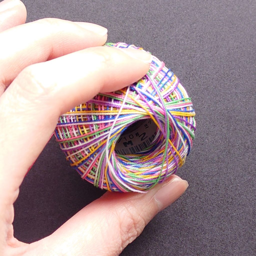 一番下のレース糸はM8です。このミックスはとにかく緑!緑がいい!この緑の単色だしてくれないかなぁ🙄って思うくらい緑が気に入りました😊ミックスを3つ使ってみましたが、どれも良い所があって、一番は選べないなぁって思います🤔