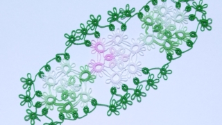 タティングレース練習中 久しぶりのオリジナル、六角形のパターンを試行錯誤