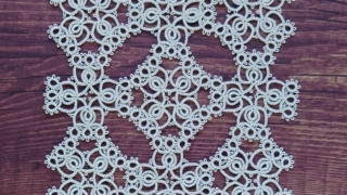 完成作品の紹介 可憐に結ぶタティングレース クロスモチーフのドイリー2